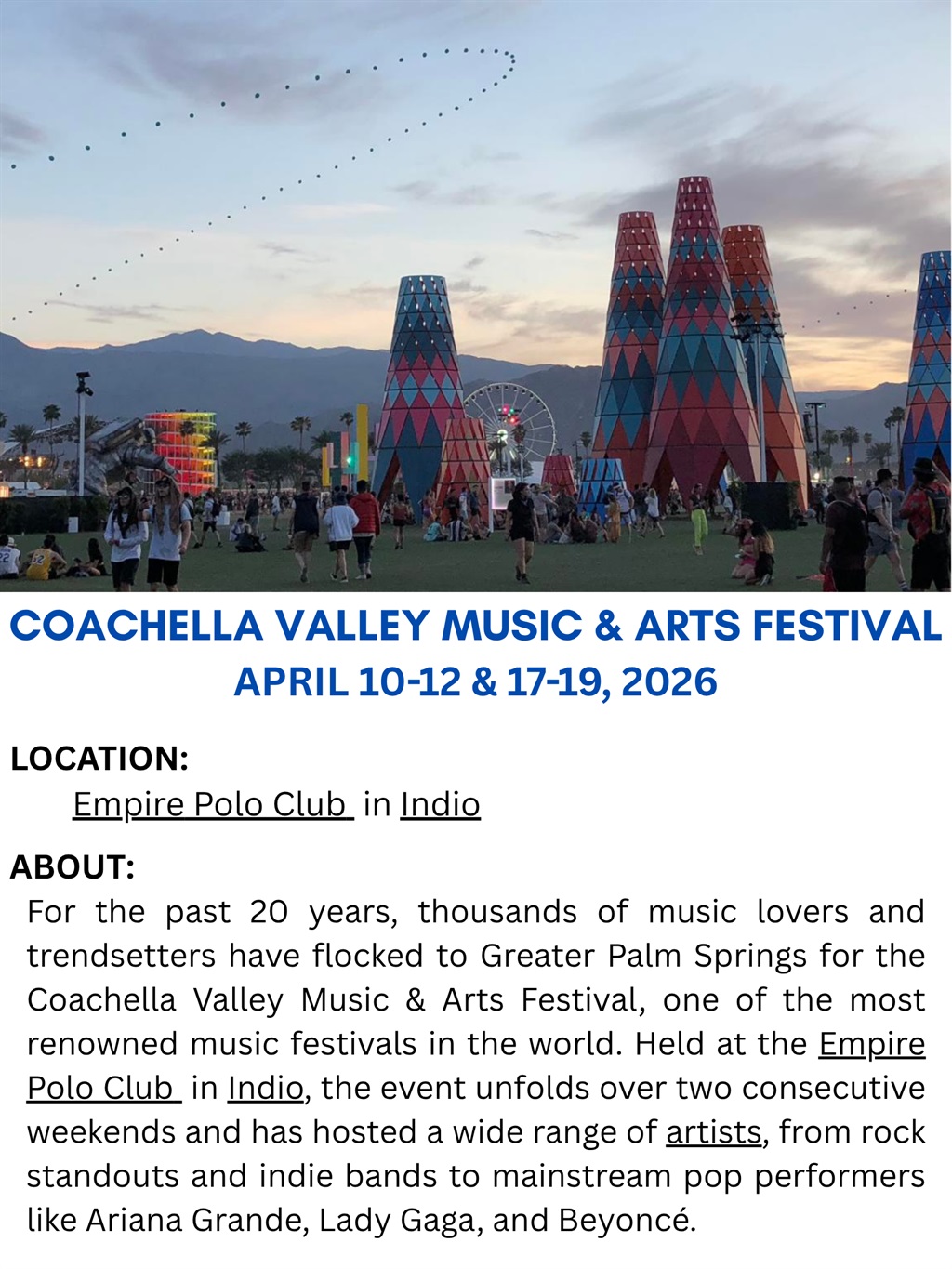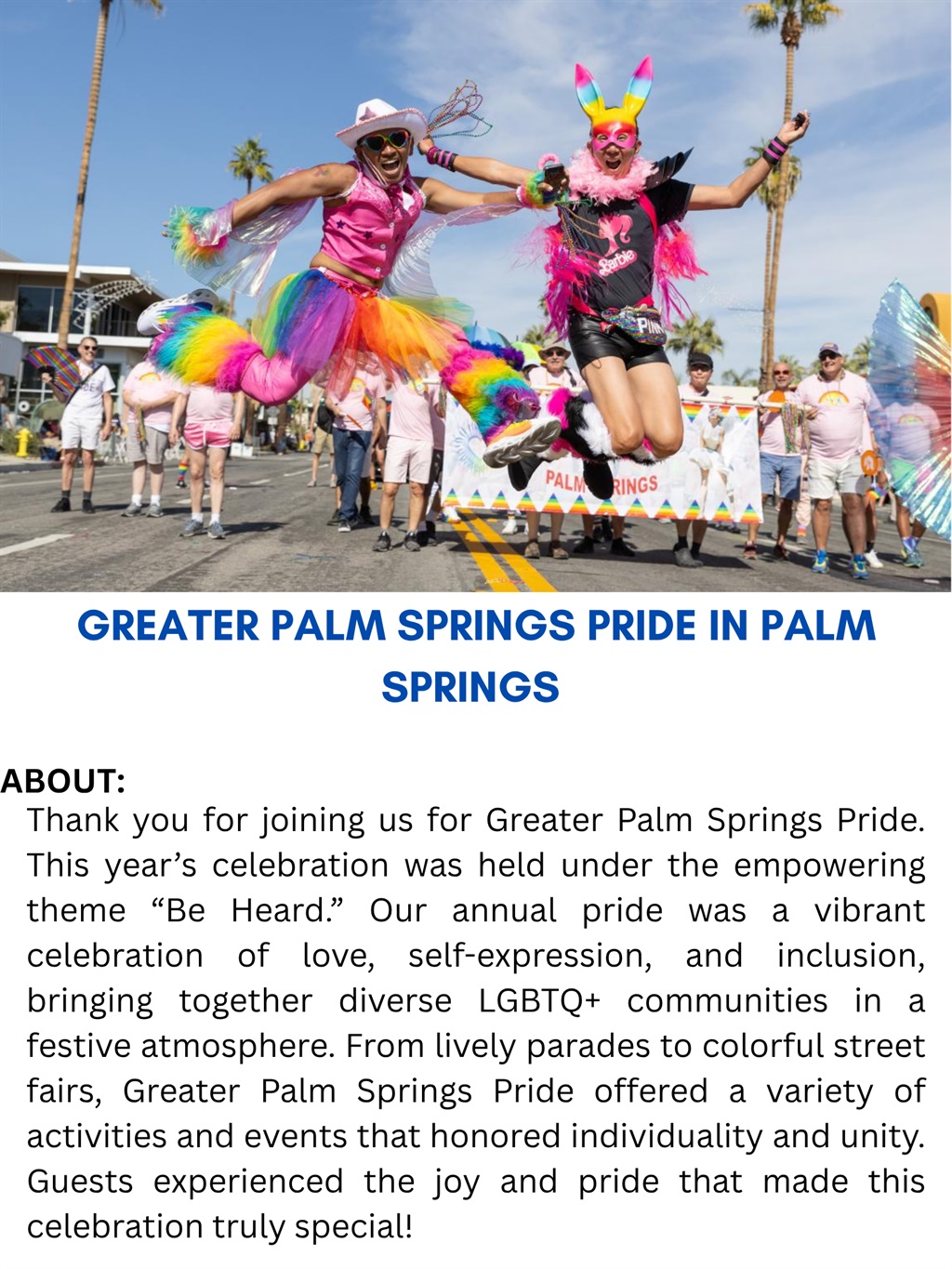 DISCLAIMER: ALL INFORMATION INCLUDING PHOTOS ARE FROM https://www.visitgreaterpalmsprings.com/events/holiday-events/